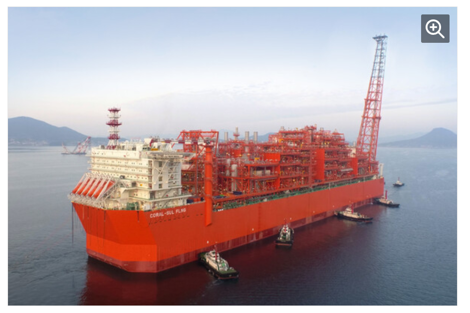 - 코랄 술 FLNG: 삼성중공업은 아프리카 최초의 FLNG인 '코랄 술(Coral Sul) FLNG'를 건조하였으며, 이 설비는 해상에서 채굴한 천연가스를 직접 정제하고 액화하여 저장·하역할 수 있는 해양플랜트입니다. 세계에서 두 번째로 큰 FLNG 시설로, 삼성중공업이 선체 설계부터 시운전까지 전 공정을 담당하였습니다. 이 설비는 2047년까지 매년 340만 톤의 LNG를 생산할 예정입니다.