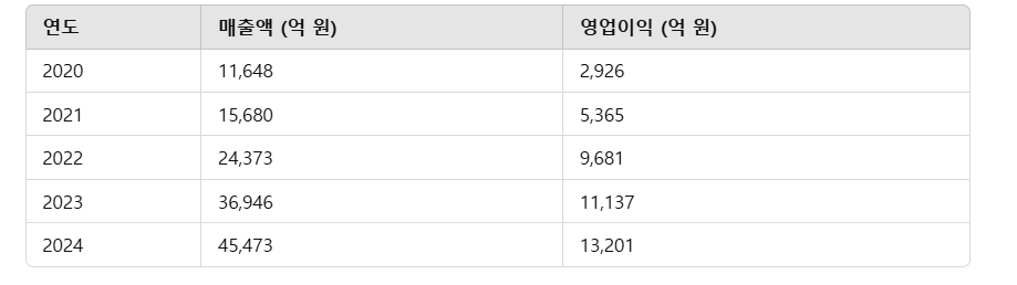 결국 영업이익률도 꾸준히 상승하여 2024년에는 약 29%를 기록하였습니다.