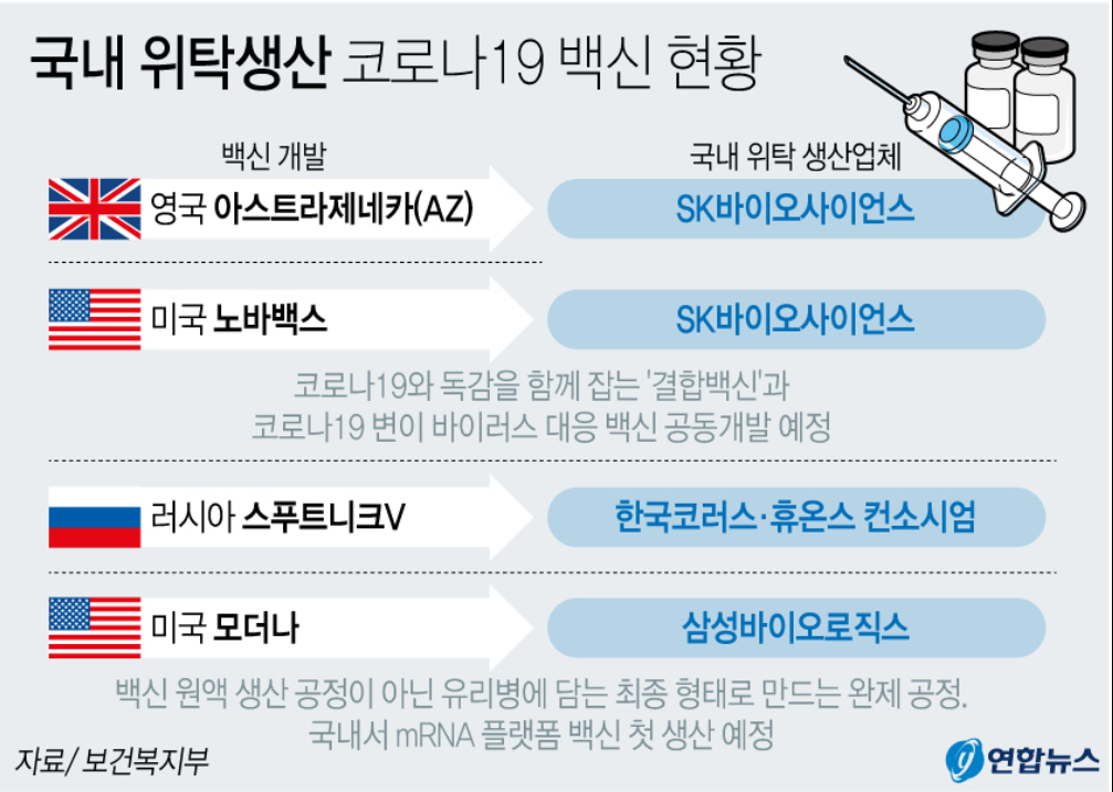 일본은 생산원가가 높아서 안되고, 중국은 기술을 아직 믿을 수 없어서 안되고, 결국 한국 밖에 없다는 결론이 도출되었고 예상대로 우리나라의 삼성바이오로직스와 SK바이오사이언스에서 위탁생산하게 되었었습니다.